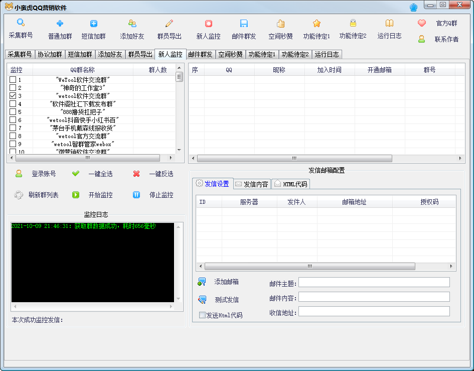 支持一键采集免验证群、协议加群、qq添加好友、群成员导出等多种功能