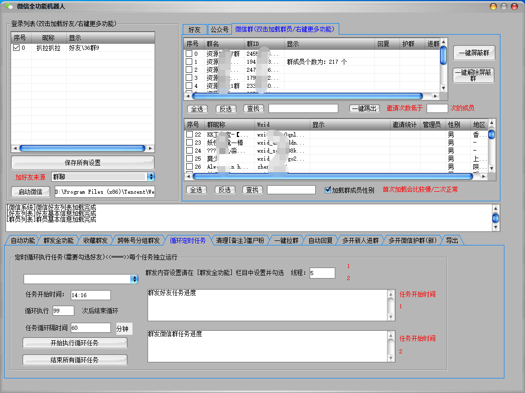 3、支持多账号群发群发不同内容,循环时间可单独设置