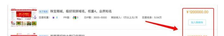 下图展示了某个平台上一些新建网站的售价,价格普遍在千元以上。而对于日均IP数、搜录量和权重较高的平台,价格就可能没有上限,从几万元到上百万元都有可能。