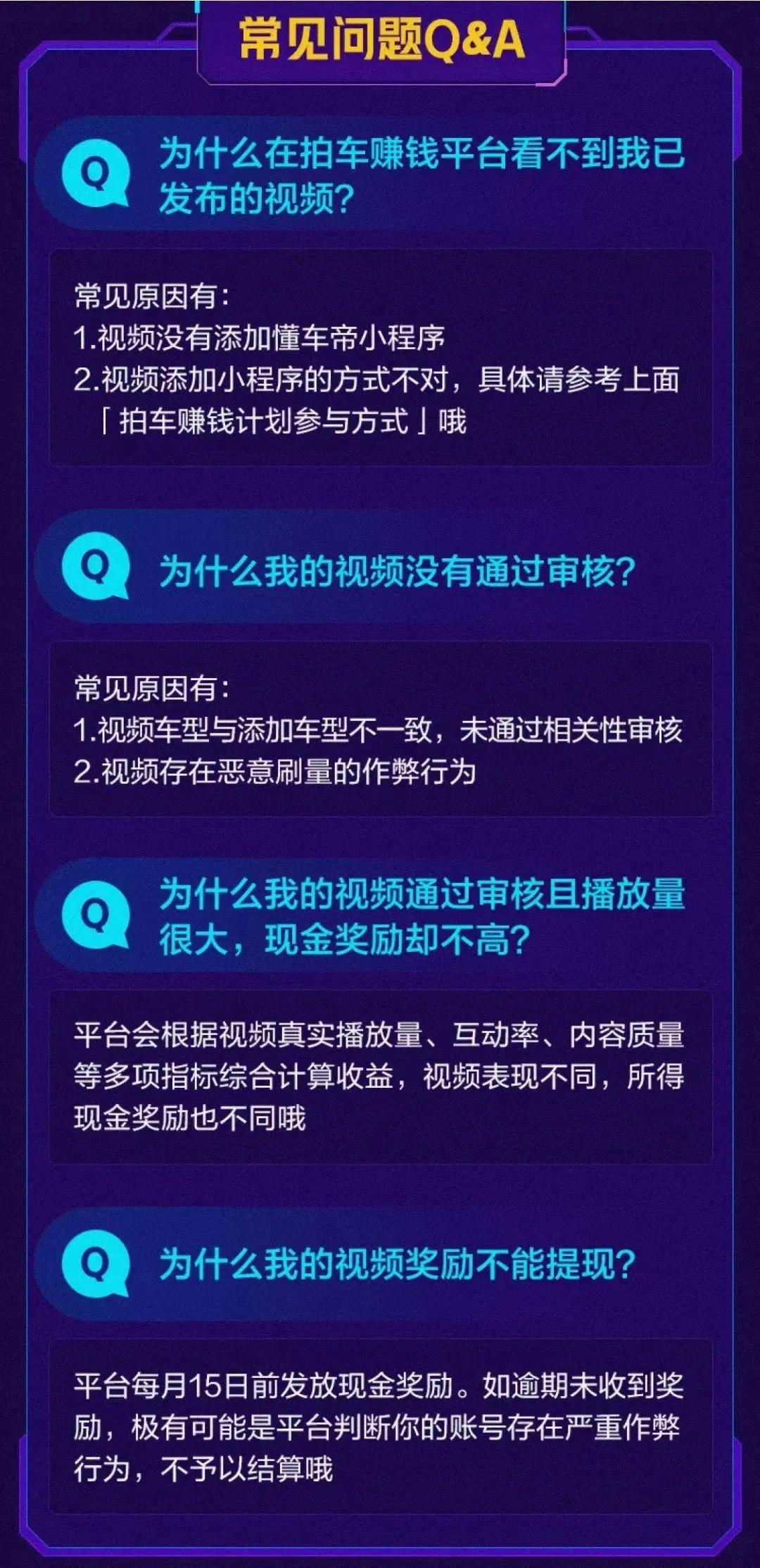 首先,你需要了解活动规则,详细阅读活动说明、参与须知以及常见问题解答,确保对活动有充分的了解。然后,你可以点击“参与计划”,选择“拍车赚钱现金奖励计划”。