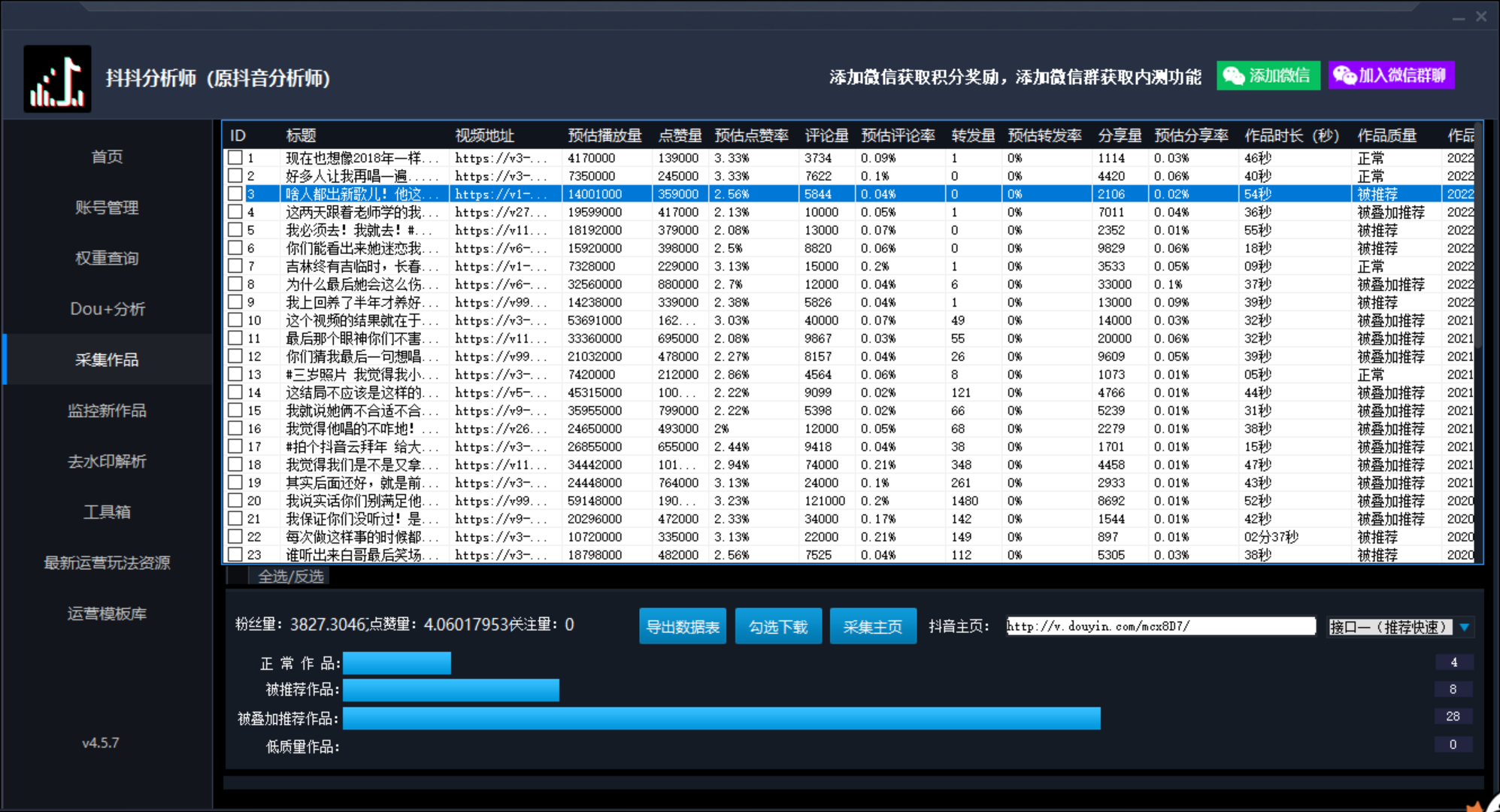 2、采集抖音竞争对手作品,预估播放量、点赞量、转发量等等